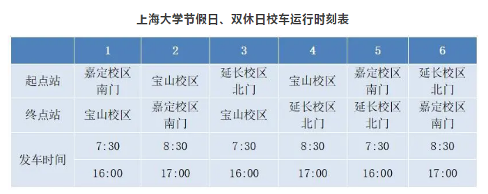 3.校车上车点在各校区的校内,其中宝山校区在行政楼、体育馆前、北门、西门站点、西外环南侧丁字路口两侧(三角花坛附近)停靠点停靠。特别提醒,南二门机动车禁止通行,为方便师生乘车和避免道路拥堵,后勤基建大楼候车点暂时移至西外环南侧丁字路口两侧。后续若有调整,将另行通知。