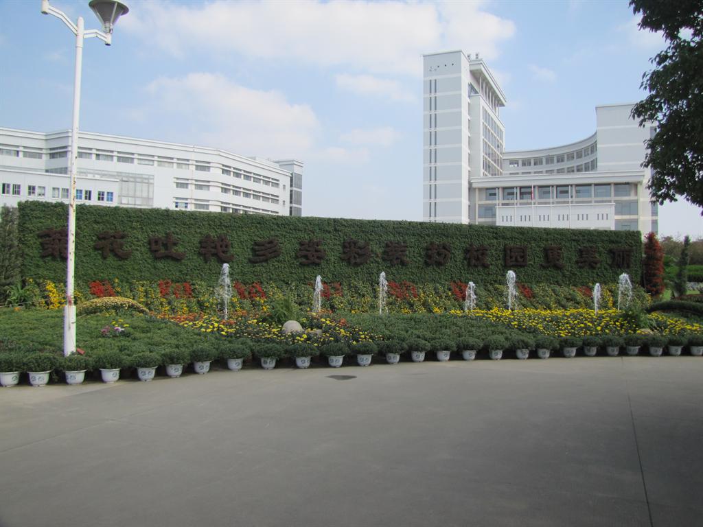 用红草扦插出“菊花吐艳多姿彩,装扮校园更美丽”十四个长1米宽0.8米的大字,嵌在以4000盆黄小菊打造的长21米、高3米的背景墙上。主体景点旁配置黄、红、粉等各色小菊3000余盆加以点缀,精品菊展区50多个品种100多盆品种菊争相吐艳,供人欣赏。菊花展举办十一载,年年菊香满园、流光溢彩,装扮校园,给上大人和参观者以美的享受、艺术的熏陶。