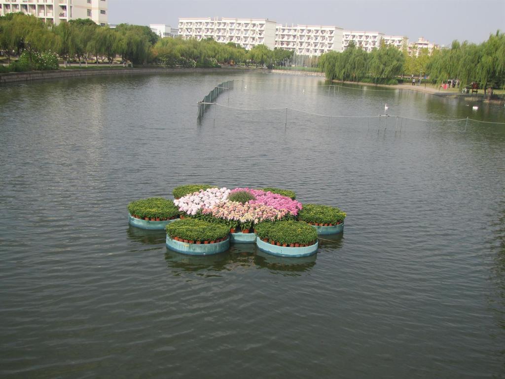 一朵盛开的娇艳花朵漂浮在泮池水面上,花朵直径3米,花瓣1.5米。金秋十月,秋高气爽、碧波荡漾、菊香四溢。整个景点洋溢着人与自然和谐相处的气息,使人心旷神怡,陶冶着上大人的情操。