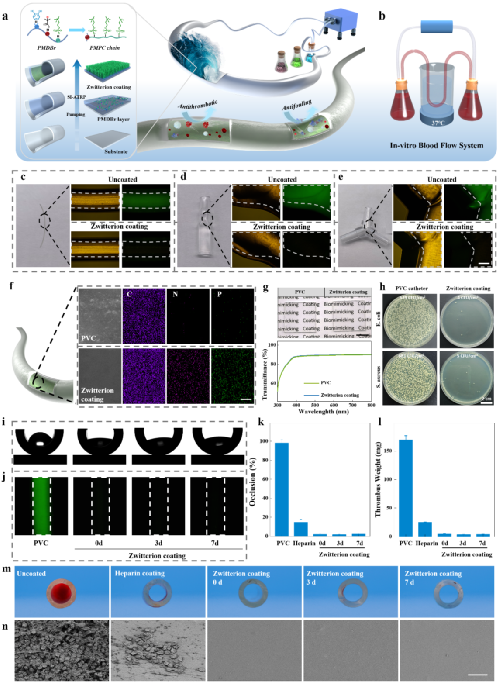 图2.具有防污、抗菌、抗血栓性能的长期稳定血液接触导管