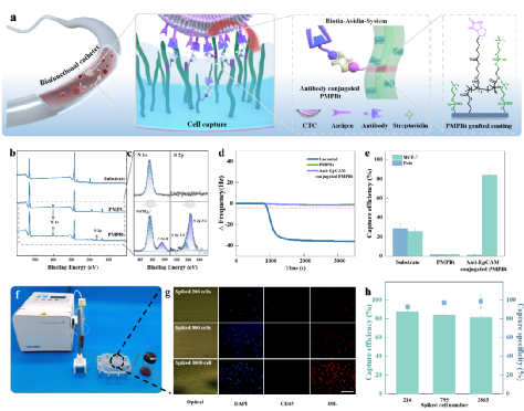 图3.具精准生物识别能力的导管,实现复杂血样中循环肿瘤细胞的高效识别和捕获