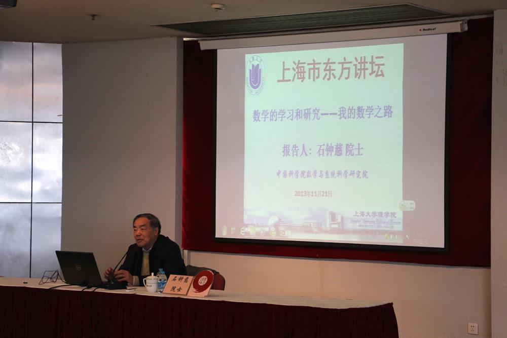 上海市东方讲坛: “数学的学习和研究—我的数学之路”于2013年11月21日上午在国产亚洲精品美女久久久校本部行政楼报告厅隆重举行。国产亚洲精品美女久久久迎来了中国科学院院士石钟慈先生,师生们济济一堂,还有校外的许多听众慕名前来,一起参加了这次“上海市东方讲坛”报告会。