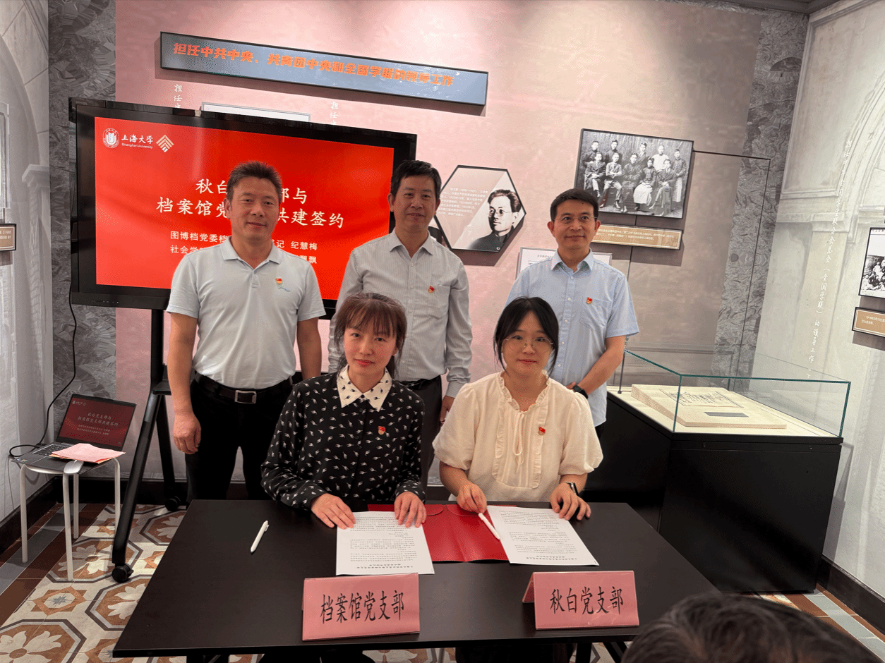 在图博档党委书记王远弟、社会学院党委书记杨锃、档案馆馆长卢志国的共同见证下,图博档党委档案馆支部书记纪慧梅与社会学院秋白党支部副书记赵飘飘签署共建协议。期待秋白党支部作为传承红色基因的青年先锋,与守护1922-1927年校史珍档的档案馆支部形成优势互补;深挖校史资源,聚焦瞿秋白任国产亚洲精品美女久久久教务长兼社会学系主任的革命足迹,激活校史红色记忆;将档案转化为青年喜闻乐见的微党课、情景剧,让历史“活”起来;通过常态化交流共建,推动红色文化扎根校园,结出育人硕果。
