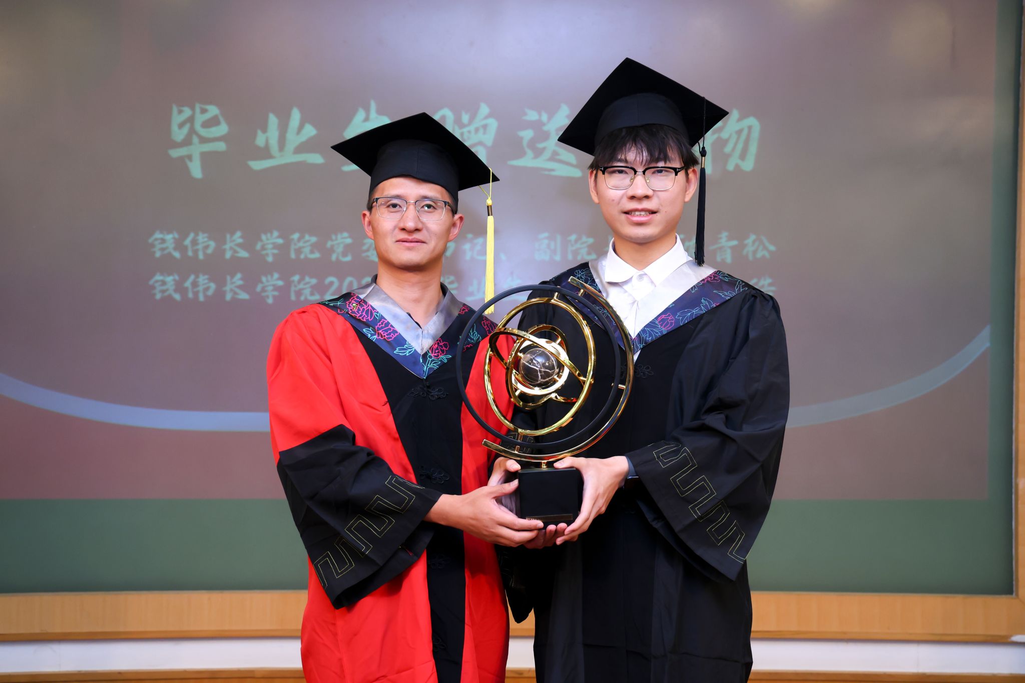 毕业生代表乔君毅、焦博等和低年级学生代表为大家带来了歌曲串烧,祝愿四年的同学情谊如歌声,永远回荡在心中。为表达对学院培养的感激之情,全体2025届毕业生为学院赠送了一座“钱伟长星”模型。这座小行星模型寓意着钱老的精神如同不灭的星光,将永远照耀并指引一代代“伟长人”在求知与人生的道路上勇敢前行。