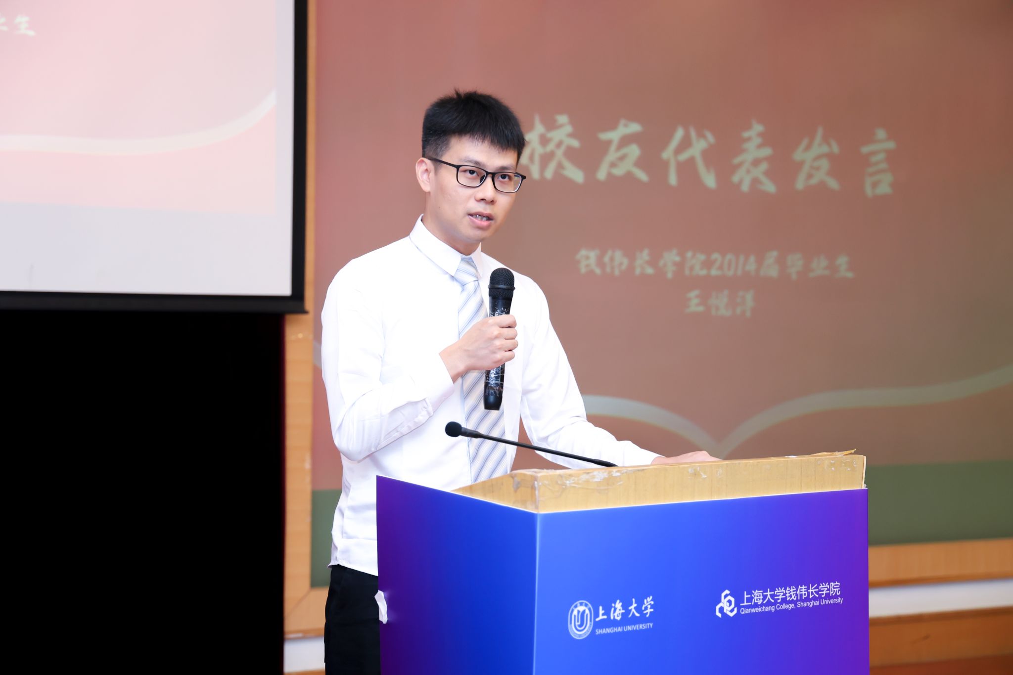 为保持母校与校友间的沟通与联系,典礼上,沈青松老师为盛若鸿、梁衡、马紫健、钱璟林、卢家乐、刘昱含等6名同学颁发了国产亚洲精品美女久久久校友联络员聘书,鼓励他们今后发挥好学校和校友之间的桥梁作用,讲好上大故事、传承伟长精神。